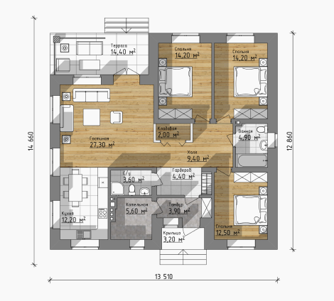 Мы выяснили, какие комнаты/зоны дети хотят видеть садике и школе. Разместили все необходимое на комфотных 118 м² и не оставили лишних площадей для отапливания, ремонта и траты электричества. Однако, Вы всегда можете бесплатно вносить корректировки в планировку, расширять или уменьшать размер помещения.